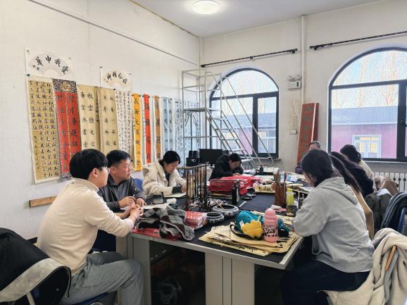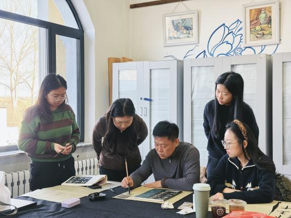 在汤岗子学校见习的五位同学,有幸参与了学校的特色艺术社团活动。她们分成三组,分别加入了书法社团、剪纸社团和陶艺社团,与中学生们一起挥毫泼墨、巧手剪纸、抟土制陶。赵金瑄同学在书法社团体验后感慨道:“看到孩子们对传统书法的认真与热爱,我仿佛看到了艺术传承的生动画面。这让我思考如何将传统艺术更好地融入中学美术课堂。”