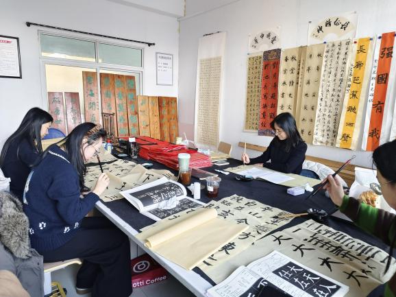 汤岗子学校研究生们练习书法