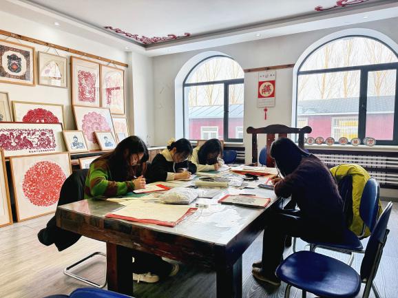 汤岗子学校研究生们体验剪纸乐趣