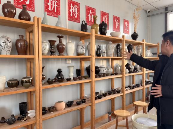 汤岗子学校袁冬生老师带领研究生们参观学生陶瓷作品